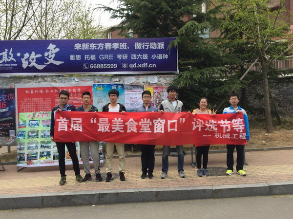 本次评选分为网上投票、现场投票和“食堂意见大征集”三个部分,活动期间各参赛窗口积极配合,广大师生踊跃参与,共39个窗口参赛,累计票数1600票,意见征集百余条。经过激烈比拼,一食堂11号窗口荣获2015-1016年度“最美食堂窗口”称号,一食堂1号刀削面窗口、二食堂一楼咖豆豆浆窗口、二食堂二楼十号咖喱屋、二食堂三楼特色美食集锦窗口荣获2015-2016年度“优秀食堂窗口”称号。